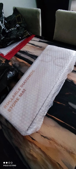 The diatomaceous earth surface soaks up water instantly and speeds evaporation, cutting countertop moisture within seconds—ideal after rinsing plates and pans.